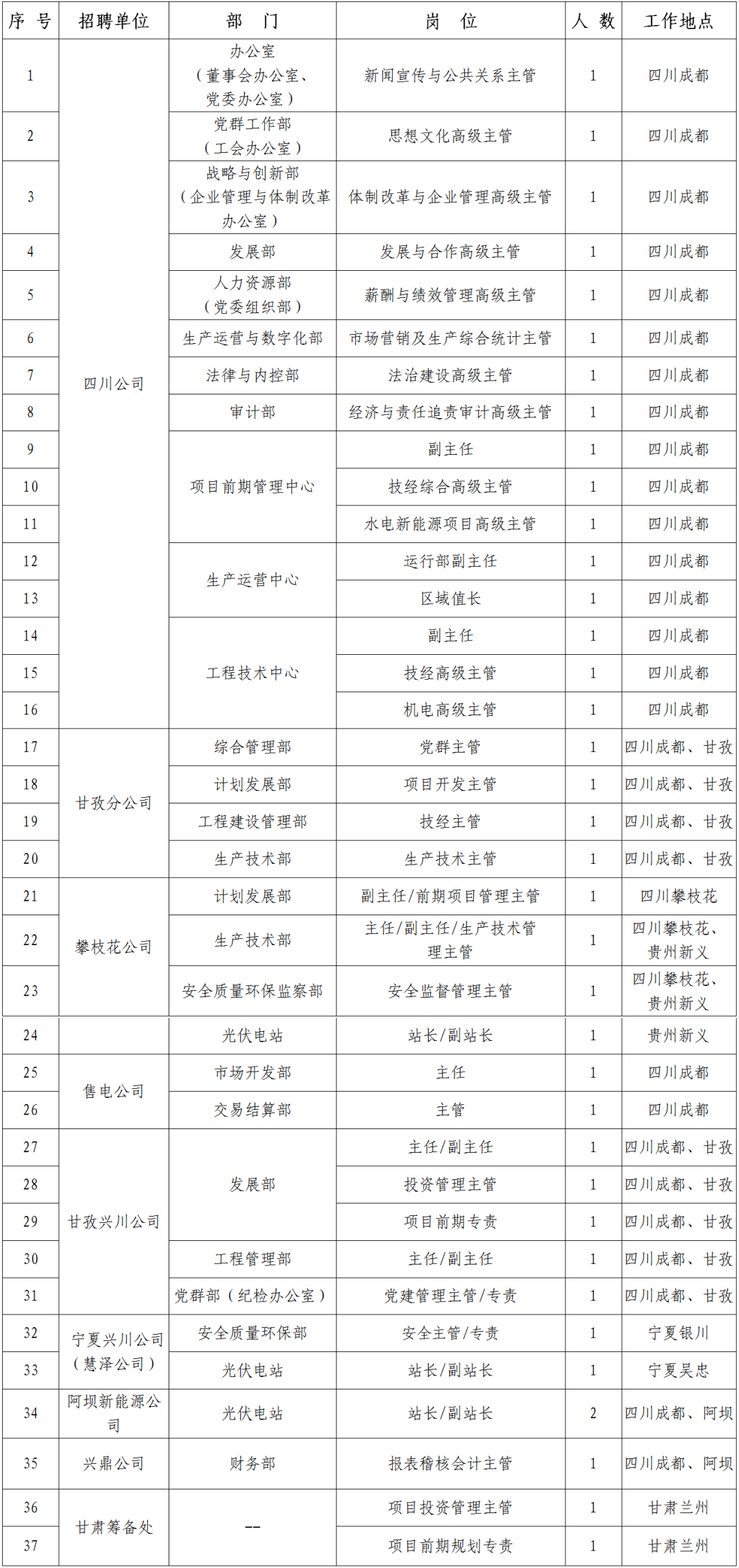國(guó)家電投集團(tuán)四川電力有限公司招聘崗位職責(zé)和任職條件